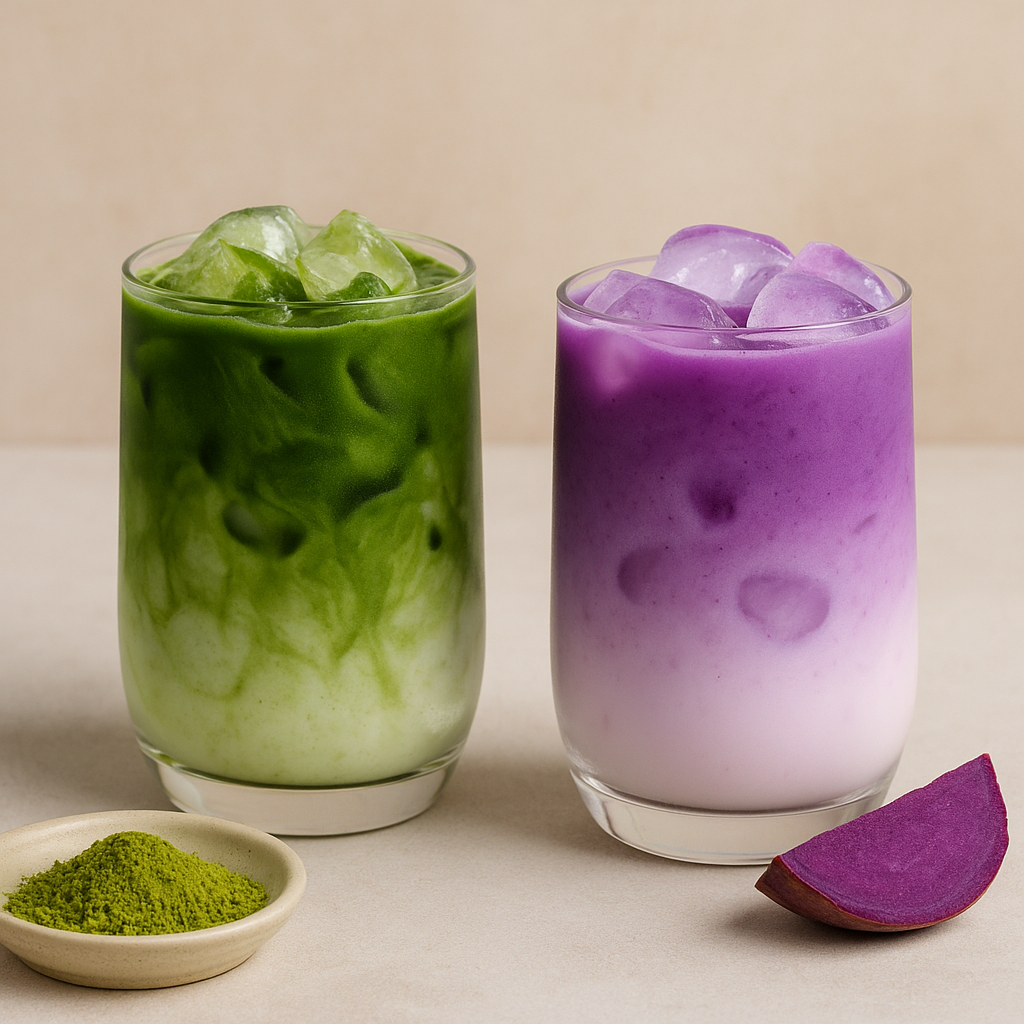 Nous voulions créer une marque qui célèbre les bienfaits du matcha et de l’ubé, tout en respectant profondément la planète, le corps et les valeurs humaines.